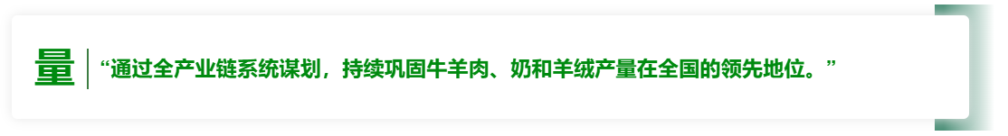 延伸产业链与提升价值。全力发展精深加工,培育壮大加工公司。2024年,肉牛、肉羊、奶牛、羊绒全产业链产值分别达到800亿、1050亿、2500亿和180亿元。